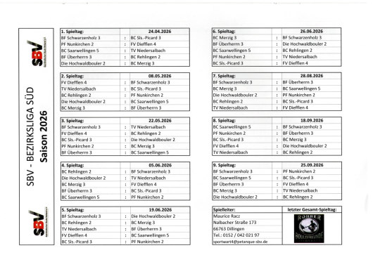 Spielplan Bezirksliga Süd 2026